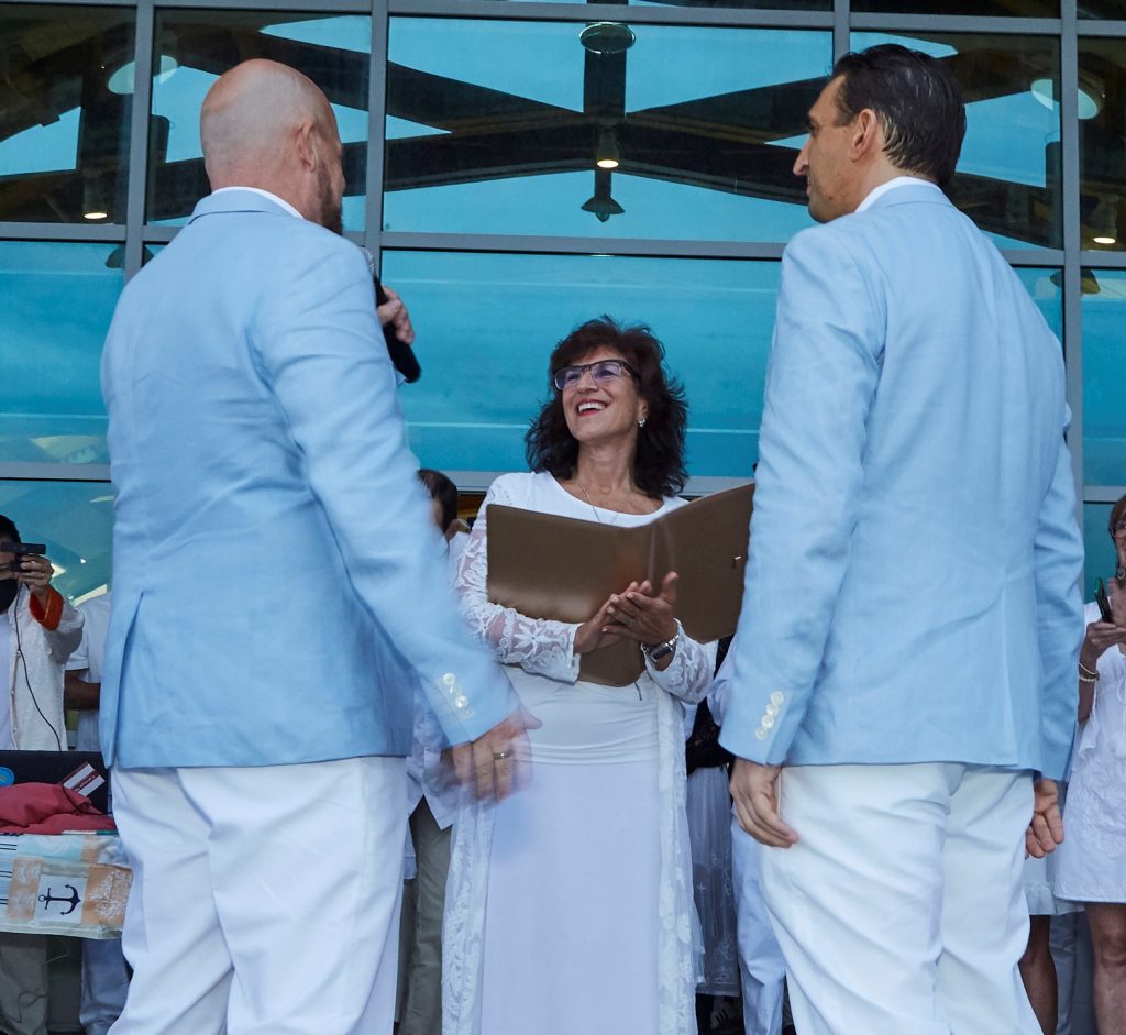 "For our wedding day, we wanted to personalize our ceremony in a manner that would celebrate our special relationship with each other and our love and gratitude for our family and friends. After discussing everything with Theresa, she crafted a ceremony that conveyed our feelings beautifully. She was super easy to work with and helped make the most special day of our lives absolutely perfect. Thank you, Theresa!" Jeff and Eric
